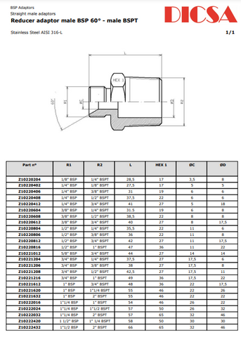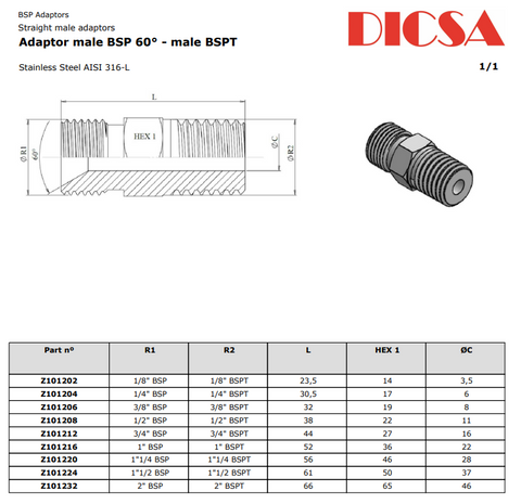 BSP to BSP Taper Male Adaptor, MB-MBT-STR