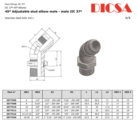 TTA Hydraulics Stainless Steel Hydraulic BSP to JIC Male Adjustable 45 Elbow Adaptor, E3-MB-MJ-45-ADJ. Imported weekly for superior speed and quality.