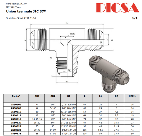 TTA Hydraulics Stainless Steel Hydraulic JIC Male Tee Piece Adaptor, MJ-MJ-MJ . Imported weekly for superior speed and quality.