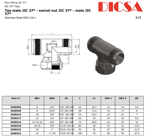 JIC Male to Swivel Female Branch T-Piece Adaptor | TTA Hyd