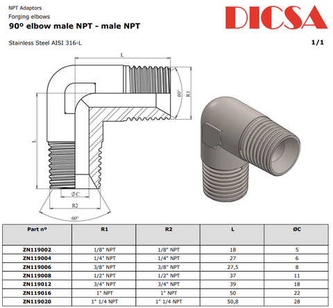 TTA Hydraulics Stainless Steel Hydraulic NPT Male Elbow Adaptor, E/MN/90. Imported weekly for superior speed and quality.