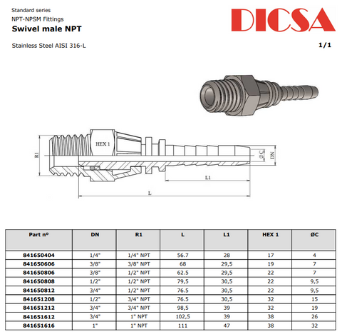 TTA Hydraulics Stainless Steel Hydraulic NPT Male Swivel HoseTail, HNSM. Imported weekly for superior speed and quality.