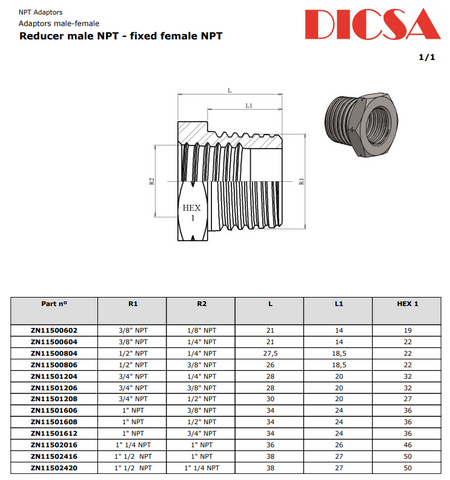 NPT Male to Female Reducing Adaptor Form A, NR | TTA Hyd