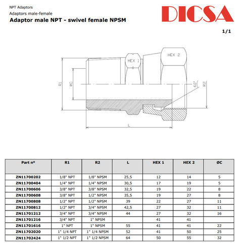 NPT Male to Female Swivel Adaptor, MN/FN/Swiv | TTA Hyd