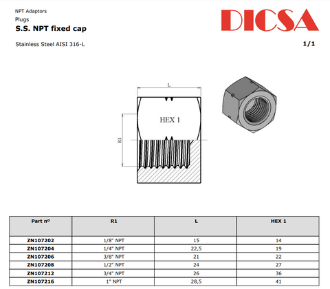 TTA Hydraulics Stainless Steel Hydraulic NPT Female Fixed Adaptor Cap, FN/CAP. Imported weekly for superior speed and quality.