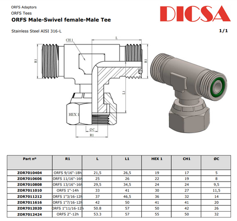 O'Ring Sealing Male to Female Branch Tee , T/MORF/FORF/MORF | TTA Hyd