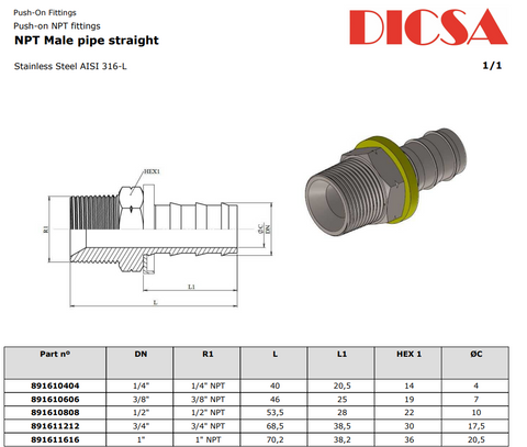 TTA Hydraulics Stainless Steel Hydraulic NPT Male to Push Lock Hose End, HPNM. Imported weekly for superior speed and quality.