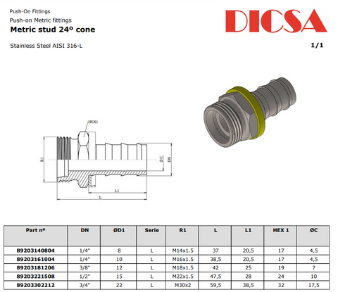 TTA Hydraulics Stainless Steel Hydraulic Metric Male to Push Lock Hose End,ÂPL/HMM. Imported weekly for superior speed and quality.