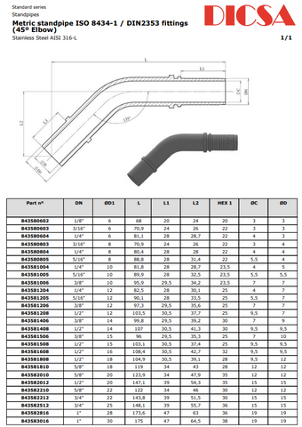TTA Hydraulics Stainless Steel Hydraulic Metric Standpipe to 45° Elbow Hose End. Imported weekly for superior speed and quality.