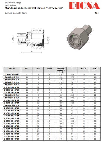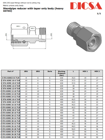 Tube End Reducers, S-Series, KOR-S | TTA Hyd