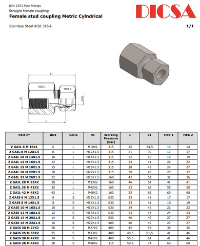 TTA Hydraulics Stainless Steel Hydraulic Tube Female Stud Coupling to Metric, S Series, GAI/SM. Imported Weekly for superior speed and quality.
