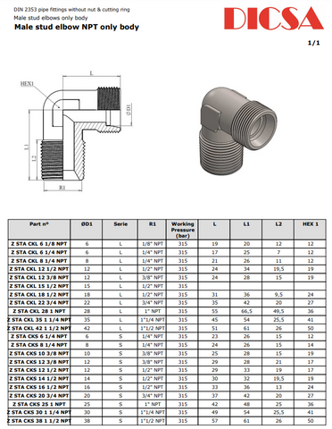 TTA Hydraulics Stainless Steel Hydraulic Tube Stud Elbow Connector to NPT, S-Series, WE/SN. Imported weekly for superior speed and quality.