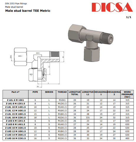 Tube Stud Barrel T-Piece to Metric,L&S Series, LE | TTA Hyd