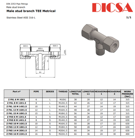 TTA Hydraulics Stainless Steel Hydraulic Stud Branch Tee Piece Connector to Metric L&S Series, TE/LM. Imported weekly for superior speed and quality.