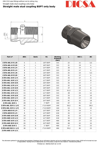 Tube Male Stud Coupling to BSPT, L-Series, GE/SRK | TTA Hyd