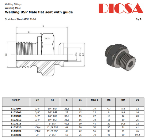 TTA Hydraulics Stainless Steel Hydraulic BSP Flat Face Male Weldon. Imported weekly for superior speed and quality.