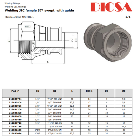 TTA Hydraulics Stainless Steel Hydraulic JIC Female Weldon, with Guide. Imported weekly for superior speed and quality.