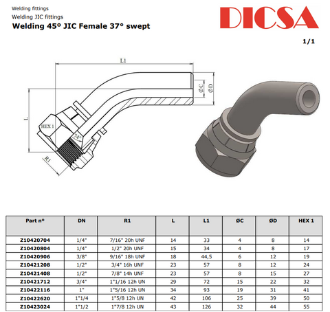 TTA Hydraulics Stainless Steel Hydraulic JIC Female Weldon, 45° Elbow. Imported weekly for superior speed and quality.
