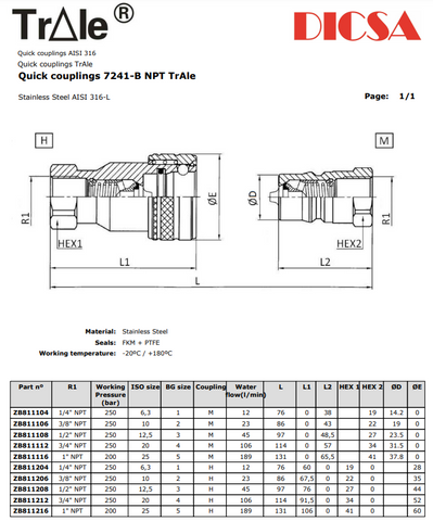 TTA Hydraulics Stainless Steel Hydraulic Quick Coupler ISO B Pin Type BSP. Imported weekly for superior speed and quality.