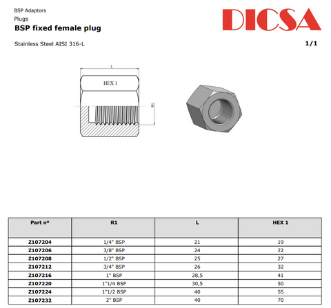 TTA Hydraulics Stainless Steel Hydraulic BSP Female Fixed Cap, FB-FIX-CAP. Imported weekly for superior speed and quality.